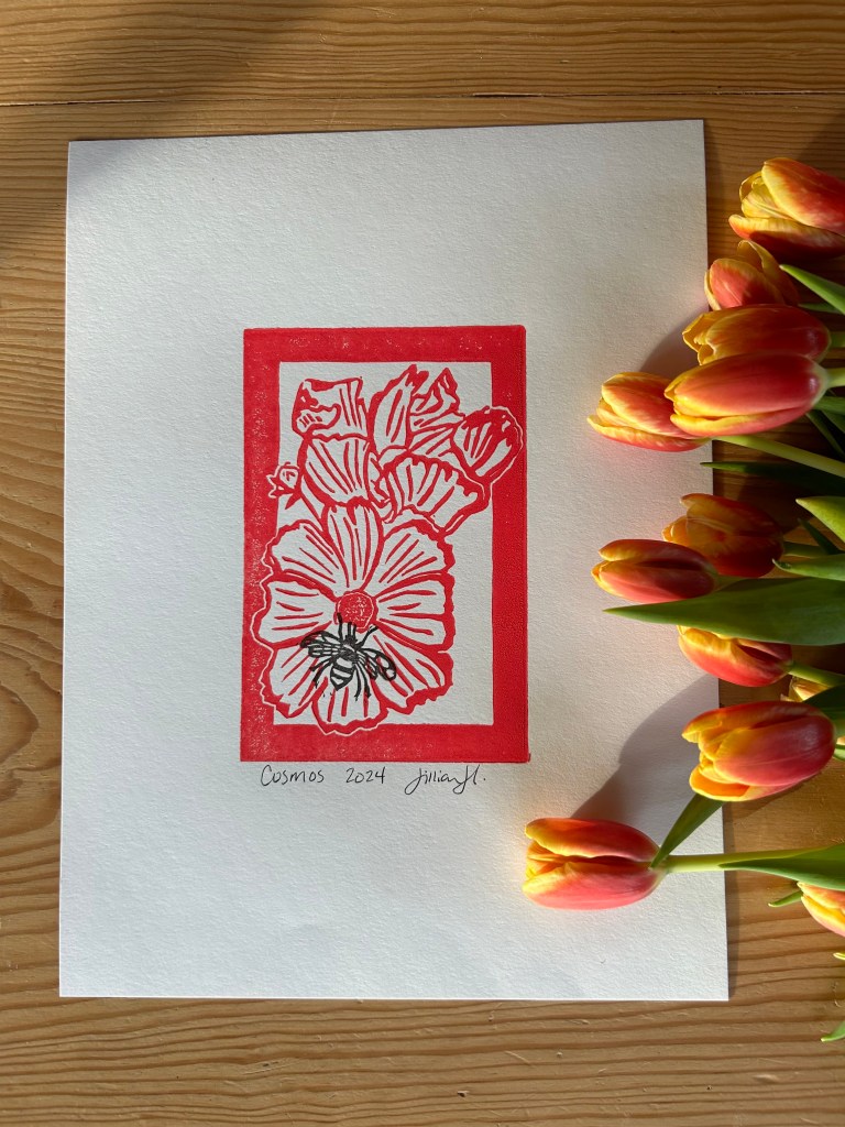 I fell in love with block printing in 2020 when I tried it out as a way to escape from the pressures of life during the COVID-19 pandemic. Over the years I’ve tried a lot of different techniques. I love the whole process from sketching a design to seeing it come to life rolling ink out onto the block. I find my inspiration from the outdoors and northern Minnesota.