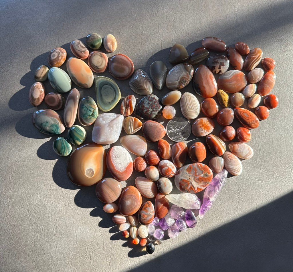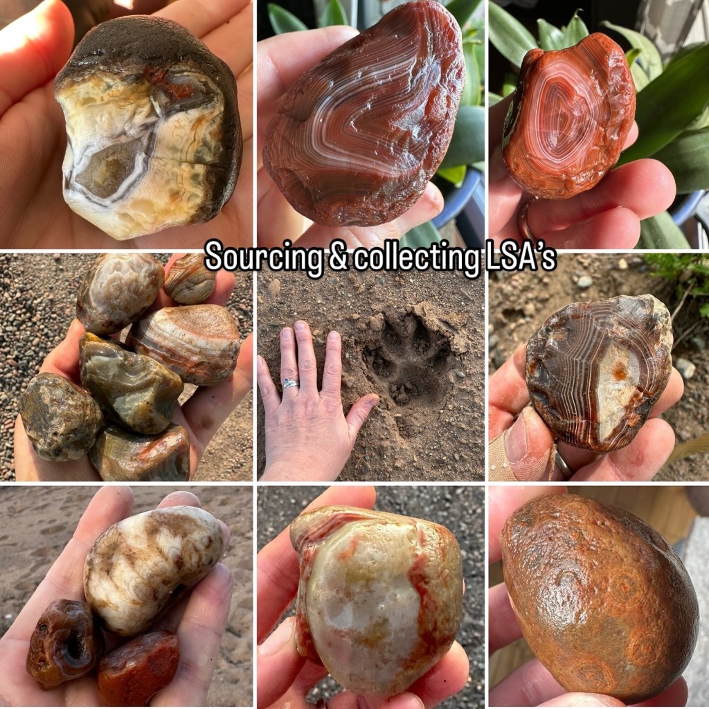 Materials: I personally find most of my own Lake Superior Agates and other local regional material. When sourcing non-local materials I aspire to buy directly from the miners or reputable vendors who sell slabs and rough. Passion: the stones…seeing how they inspire jewelry artists to create pieces to be adorned for generations to come. Purchasing handmade jewelry with hand-cut cabochons supports two artist and fosters the spirit of both lapidary and jewelry art. Goals: to spark joy and creative inspiration for jewelry artists and customers; to expand common knowledge and draw attention to the beauty and technical aspects of this art form; spur dialogue about ethical sourcing, artistic process and value.