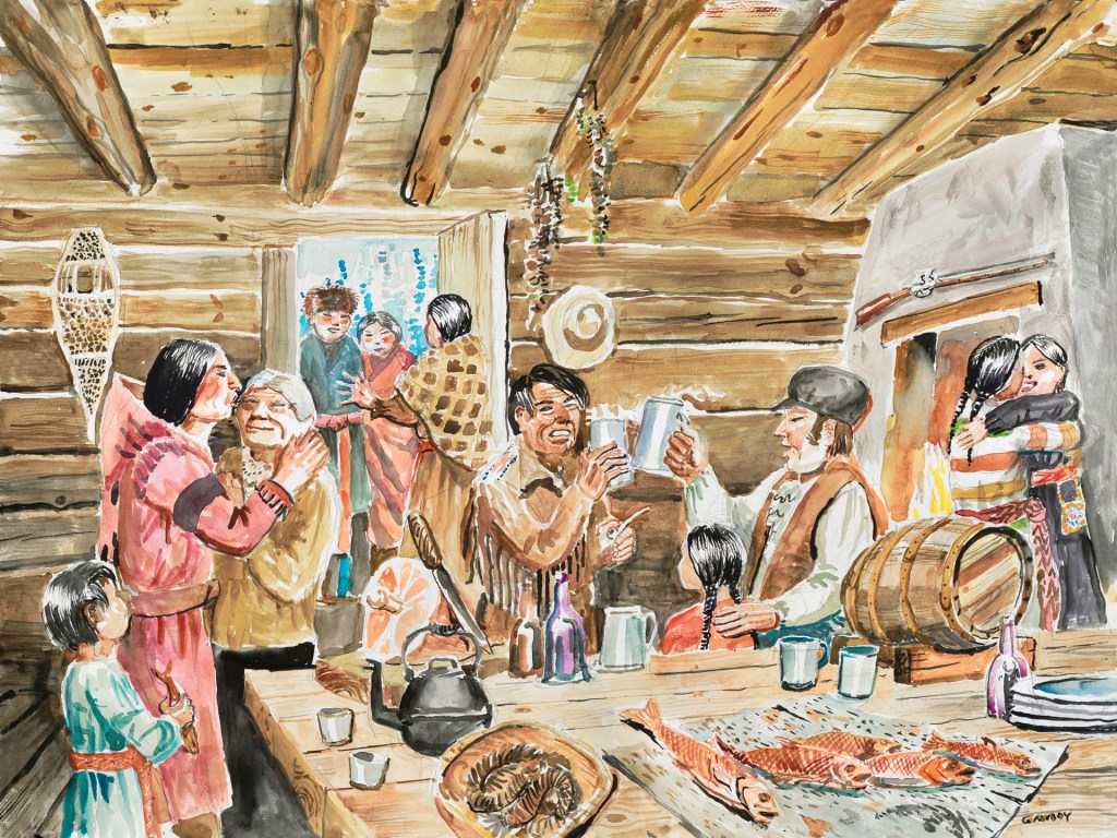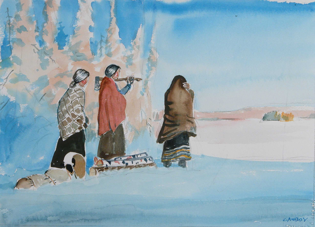 Carl Gawboy, a Boise Forte Anishinaabe/Ojibwe and Finnish artist and master storyteller, developed his own painting style with a commitment to honest depiction of everyday Ojibwe rituals of sugaring, ricing, canoeing, and harvesting.